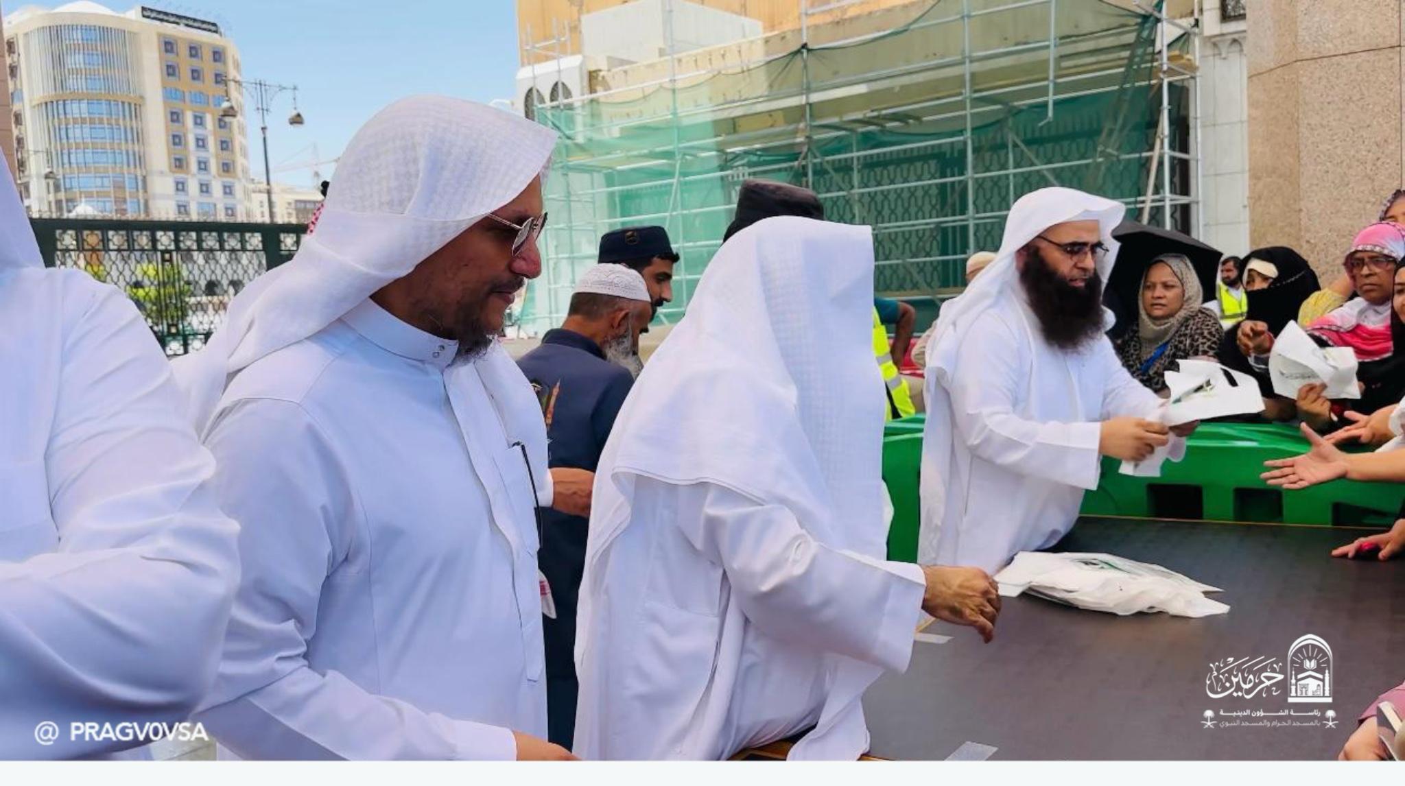 وكان في مقدمة المستقبلين فضيلة مساعد رئيس الشؤون الدينية بالمسجد النبوي، الشيخ الدكتور محمد بن أحمد الخضيري، إلى جانب عدد من وكلاء الرئاسة، حيث أكد الجميع أن هذه المبادرة تأتي في إطار رؤية الرئاسة الهادفة إلى إثراء تجربة القاصدين، ونشر الهداية للعالمين، ترجمة لتوجيهات معالي رئيس الشؤون الدينية بالمسجد الحرام والمسجد النبوي، الشيخ الأستاذ الدكتور عبدالرحمن بن عبدالعزيز السديس –وفقه الله–.