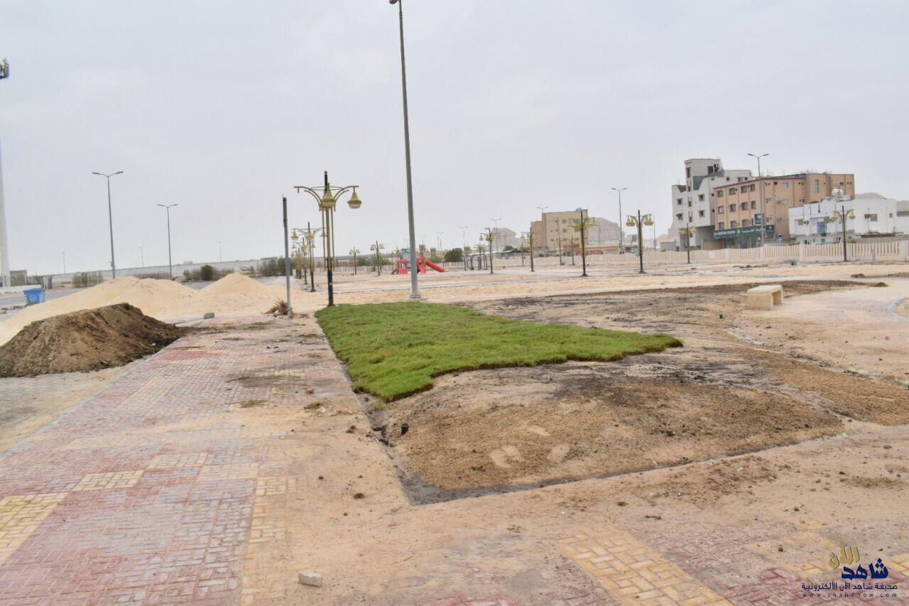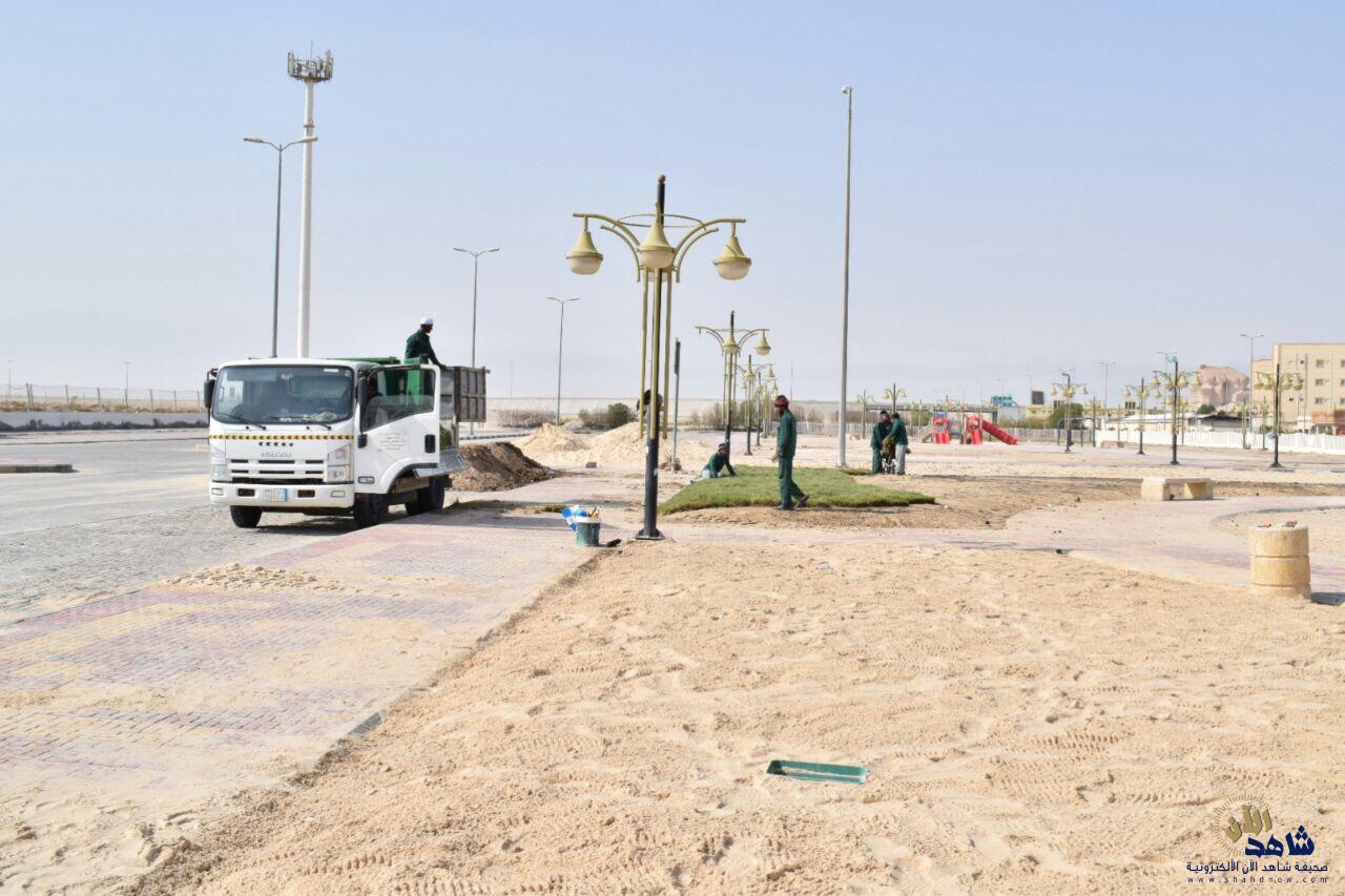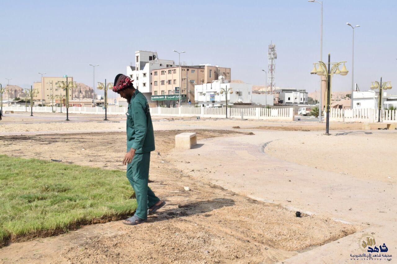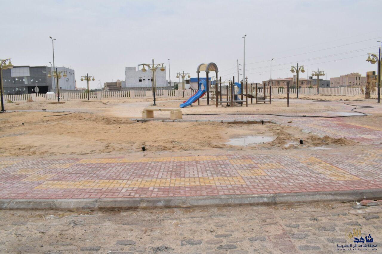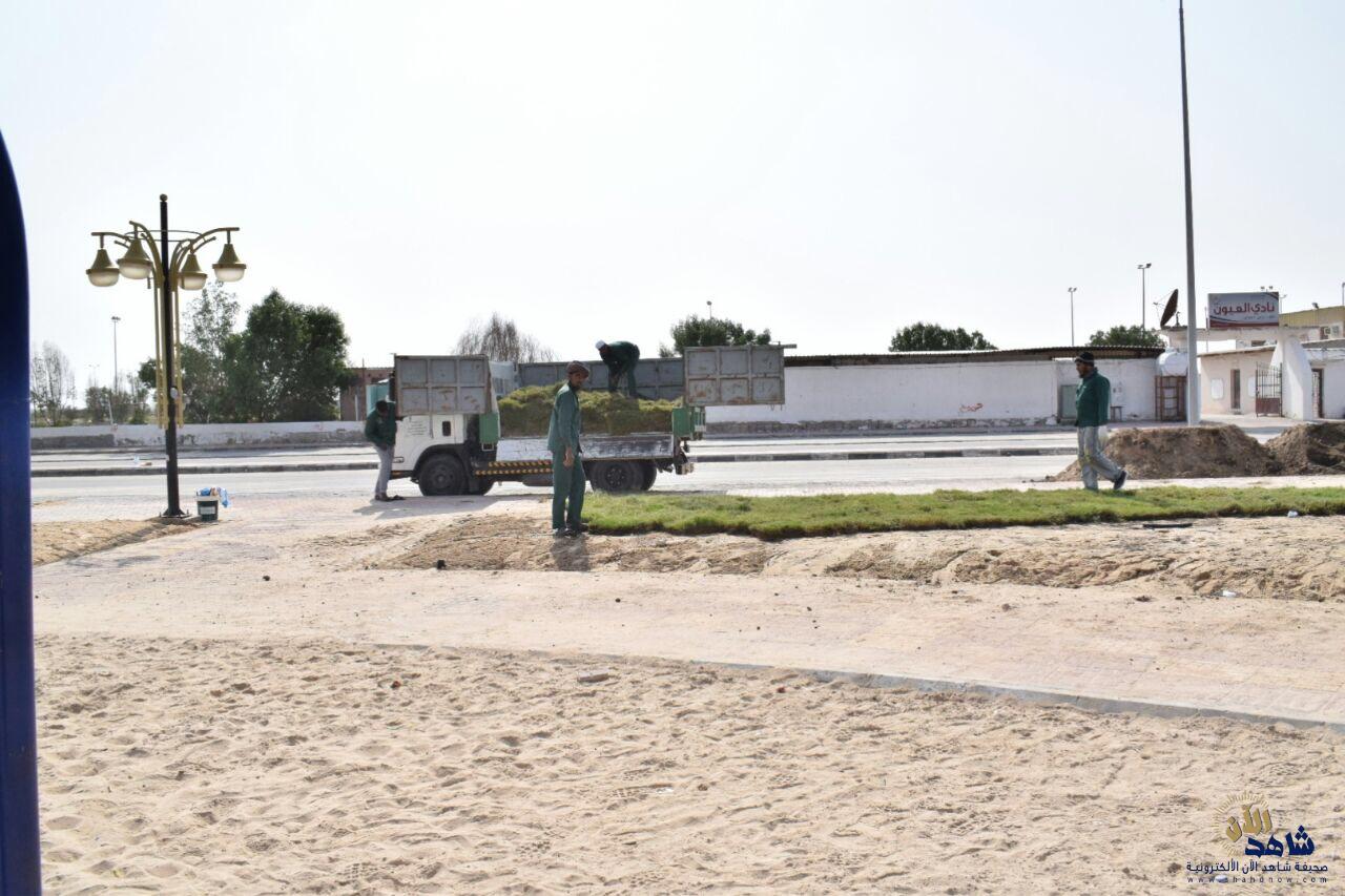 ان العمل جارى على صيانة شبكة الرى الحديقة وتم إزالة الاسفلت بالمنطقة الوسطية الحديقة وتجهيز ساحة في الوسط وقد تم البداء في زراعة الإنجيل مع العمل بالتوازي للصيانة أعمدة الإنارة