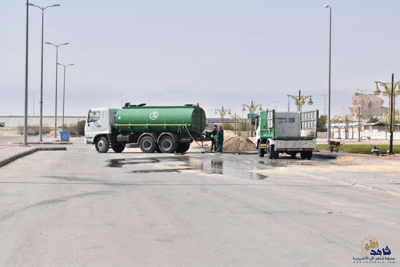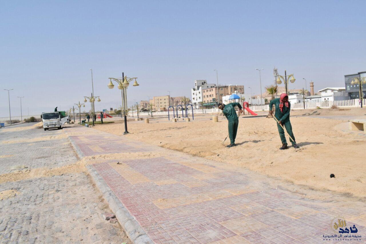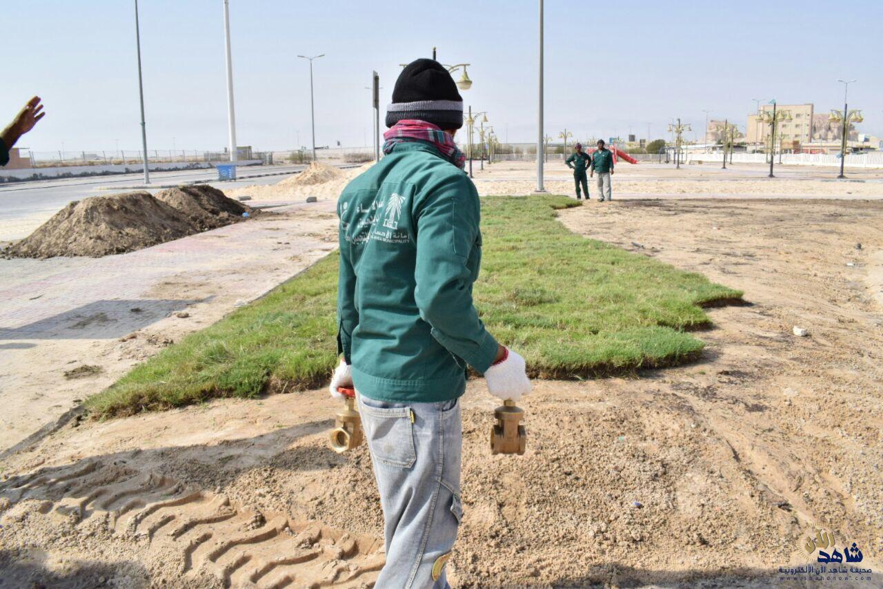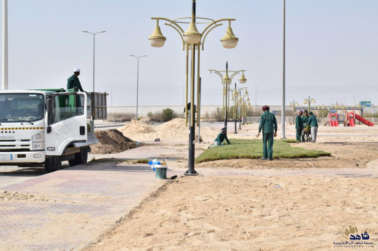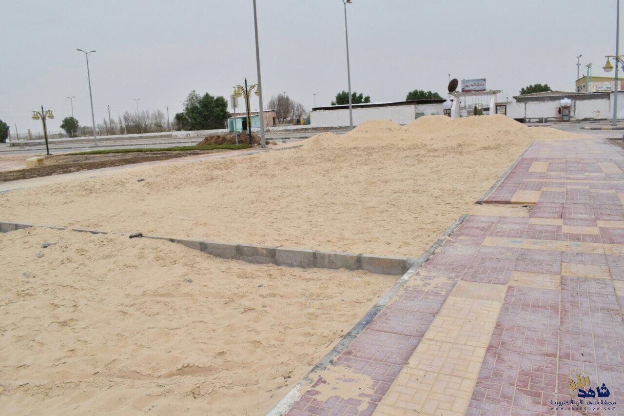 ان العمل جارى على صيانة شبكة الرى الحديقة وتم إزالة الاسفلت بالمنطقة الوسطية الحديقة وتجهيز ساحة في الوسط وقد تم البداء في زراعة الإنجيل مع العمل بالتوازي للصيانة أعمدة الإنارة