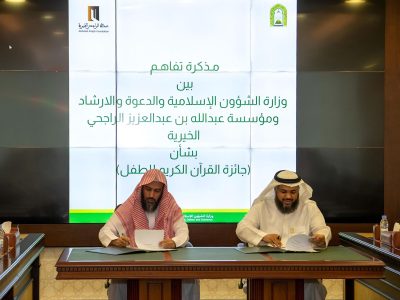 وتنص المذكرة على عدد من مجالات التعاون بين الجانبين، ومنها تأسيس “جائزة القرآن الكريم للطفل” بإشراف وزارة الشؤون الإسلامية، وتنفيذها من قبل المؤسسة الخيرية، والعمل على ضمان استدامة الجائزة وتطويرها بما يسهم في تحقيق أهدافها التربوية والقرآنية، وتوسيع نطاقها مستقبلاً لتشمل مناطق متعددة في المملكة، وتفعيل البرامج التربوية المصاحبة للجائزة بما يحقق بناء شخصية قرآنية متوازنة في الطفل من النواحي العلمية والسلوكية، على أن تصل القيمة الإجمالية للجوائز المقدمة إلى مليون ريال، تحفيزاً للمشاركة وتعزيزاً لمكانة الجائزة.