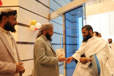 استقبل معالي وزير الأوقاف والإرشاد، الدكتور محمد بن عيضة شبيبة، اليوم السبت، في مكة المكرمة، (78) حاجاً يمنياً من الفوج الذي تعرّضت طائرته للقصف الصهيوني في مطار صنعاء، الأربعاء الماضي، وتمت إعادة جدولة سفرهم براً وجواً بما يتوافق مع ظروفهم ورغباتهم، ليصلوا بسلام إلى الأراضي المقدسة عبر منفذ الوديعة البري.