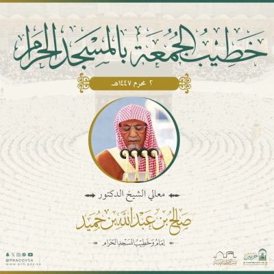 أعلنت رئاسة الشؤون الدينية بالمسجد الحرام والمسجد النبوي عن أسماء أئمة و خطباء صلاة الجمعة يوم 2 محرم 1447هـ، وذلك ضمن الجدول الدوري لإمامة وخطابة الحرمين الشريفين.