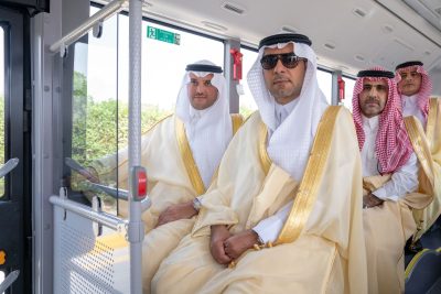وتجول سموّه ومعالي وزير البلديات والإسكان بالحافلة كخطوة للتدشين للحافلات.