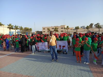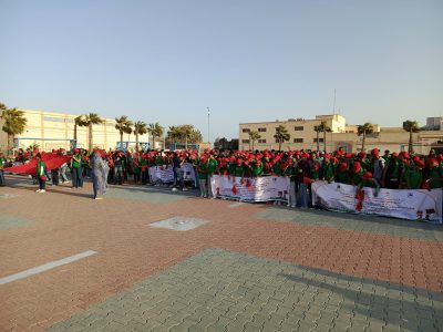 وانطلق البرنامج المحتوي على 1100 طفل وطفلة من مدينة الداخلة، من ساحة الحسن الثاني، عبر حافلات حديثة، في أجواء احتفالية مهيبة شارك فيها الأطفال وذويهم. بعد وصول السيد (الخطاط ينجا) إلى موقع الانطلاق، حيث تفقد طوابير المشاركين، والتقى بهم وسط أجواء فرائحية زرعت البهجة في نفوس الجميع.