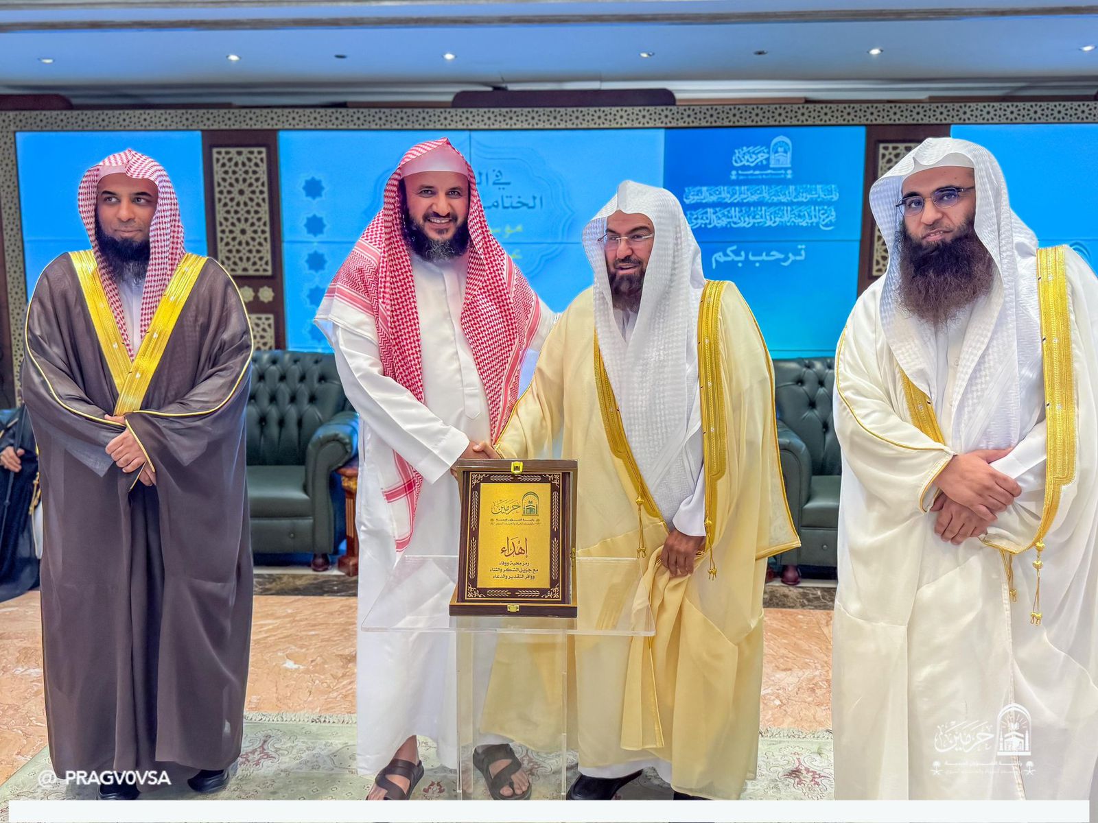 أقام فرع رئاسة الشؤون الدينية بالمسجد النبوي الحفل الختامي لأعمال موسم حج عام 1446هـ، برعاية وحضور معالي رئيس الشؤون الدينية بالمسجد الحرام والمسجد النبوي، الشيخ الأستاذ الدكتور عبدالرحمن بن عبدالعزيز السديس، وبحضور فضيلة الشيخ الدكتور صلاح البدير إمام وخطيب المسجد النبوي، وفضيلة الشيخ عبدالرحمن خاشقجي شيخ المؤذنين، وأصحاب الفضيلة والسعادة مستشاري رئاسة الشؤون الدينية بالمسجد النبوي، ووكلائها، وعدد من منسوبي الرئاسة، وممثلي الجهات المشاركة في برامج ومبادرات الخطة التشغيلية للموسم.