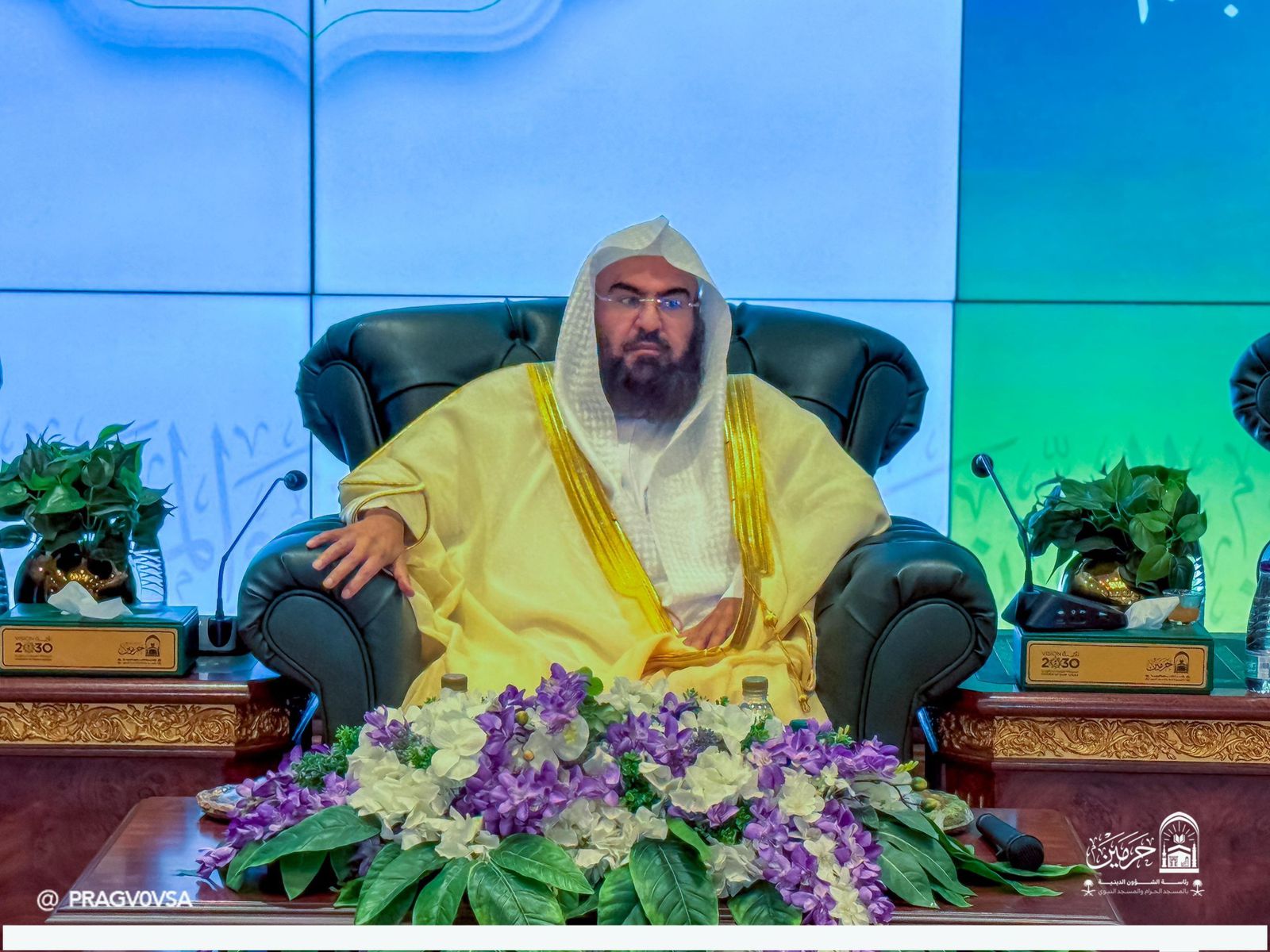 كما ألقى معالي الشيخ الأستاذ الدكتور عبدالرحمن بن عبدالعزيز السديس كلمة ضافية بهذه المناسبة، أشاد فيها بما تحقق من منجزات مزهرة ومخرجات مثمرة، مشددًا على أهمية الاستمرار في تطوير منظومة العمل الديني بمختلف شؤونه، وفي شتى مجالاته، بما يعكس رسالة الحرمين الشريفين إلى العالم، القائمة على تعزيز القيم الإسلامية بالاعتدال والوسطية، وبما يُثري تجربة الزائر بأعلى درجات المهنية، وأرقى الخدمات التقنية، في بيئة تعبّدية تتواءم مع تطلعات القيادة الرشيدة، وتُحقق مستهدفات الرؤية السديدة، ضمن منظومة عمل مؤسسي محوكمة.