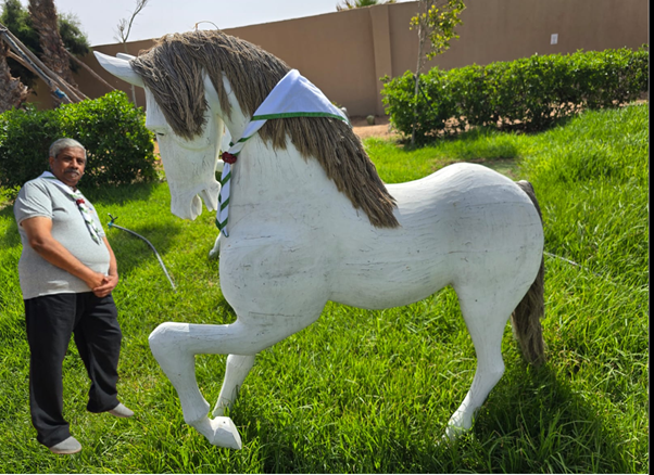 استخدم (ق.محراب) أدوات الذكاء الاصطناعي وتقنيات المعالجة الرقمية ليُجسد خياله على أرض الواقع، فظهرت التماثيل والمنحوتات وحتى الأشجار والمجسمات الفنية في أرجاء المنتجع وهي ترتدي المنديل الكشفي، في مشهد أثار إعجاب كل من شاهده.