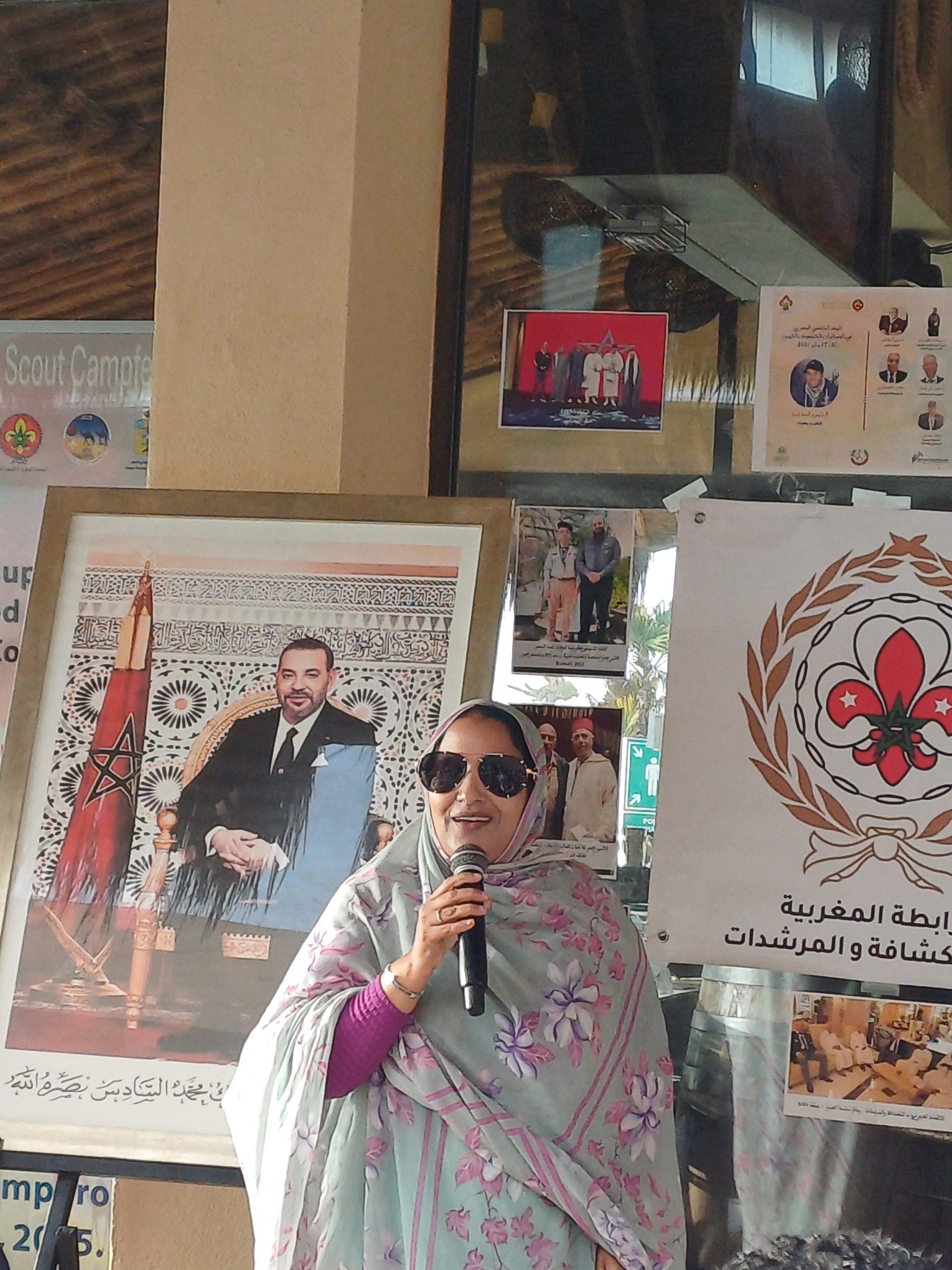 ثم تحدثت تويليه بكار عن أهالي الداخلة ودور العملية التعليمية والحركة الكشفية في تنمية الجهة ونهضتها.