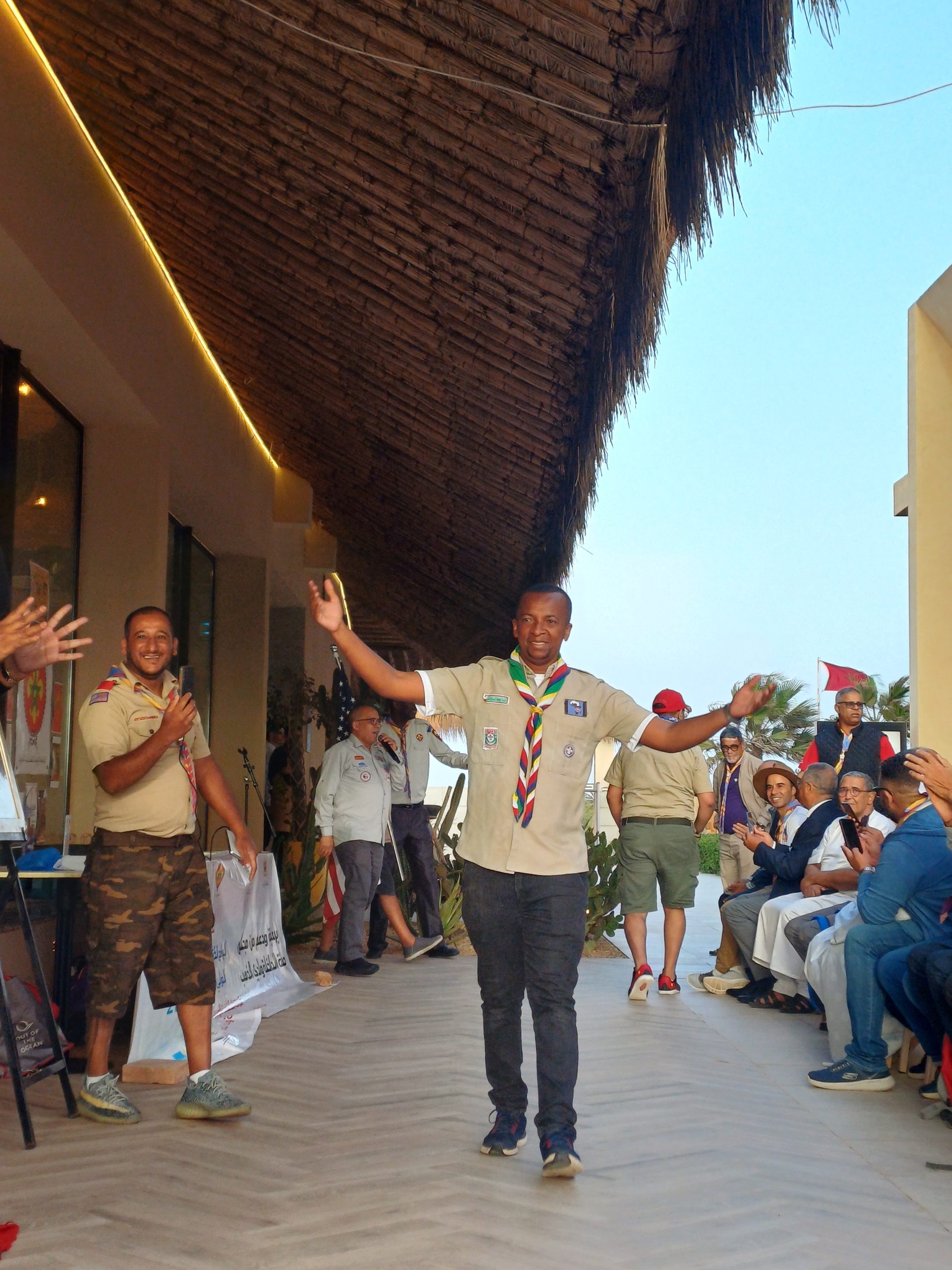 كما أعرب عن شكره وتقديره للمملكة المغربية ولجهة الداخلة وادي الذهب والجامعة الكشفية المغربية لاستضافتهم المخيم وتسخير كافة الإمكانات لإقامته .