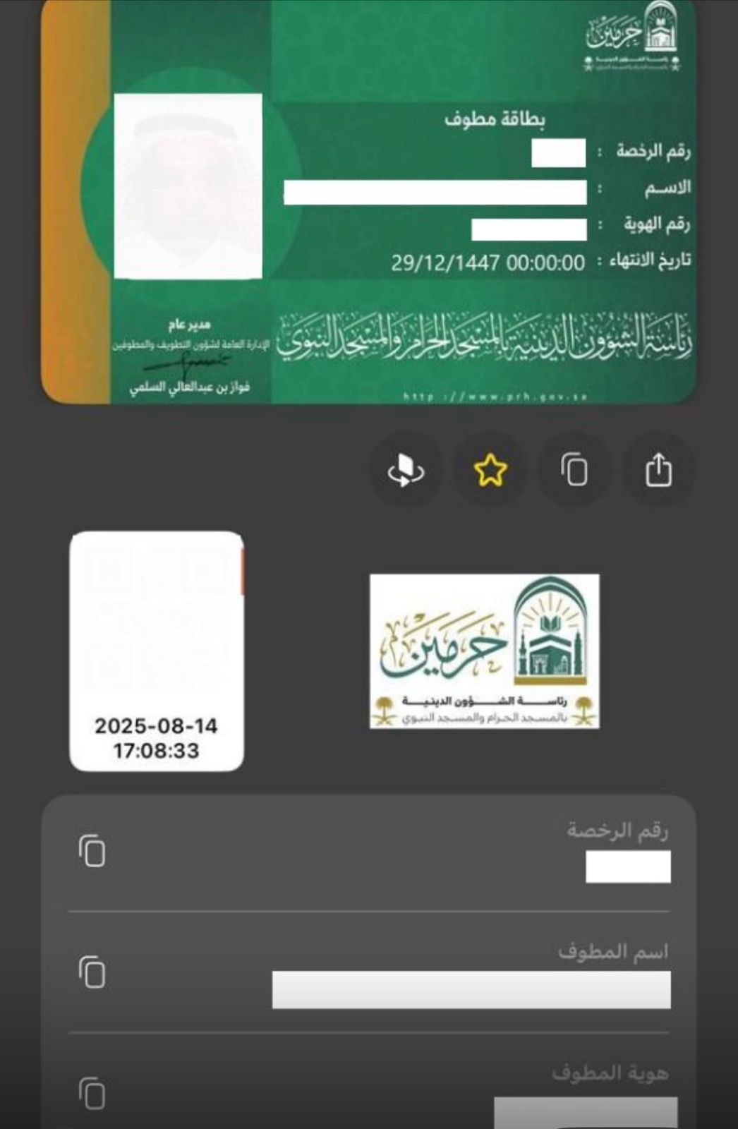 عززت رئاسة الشؤون الدينية المسار الإثرائي للمطوفين ؛ حيث سلمت رئاسة الشؤون الدينية بالمسجد الحرام والمسجد النبوي، اليوم الأربعاء 1447/2/26 كبار المطوفين في المسجد الحرام الرخصة الأولى المعتمدة لتطويف الطائفين الراغبين بتطويفهم عبر تطبيق “توكلنا”