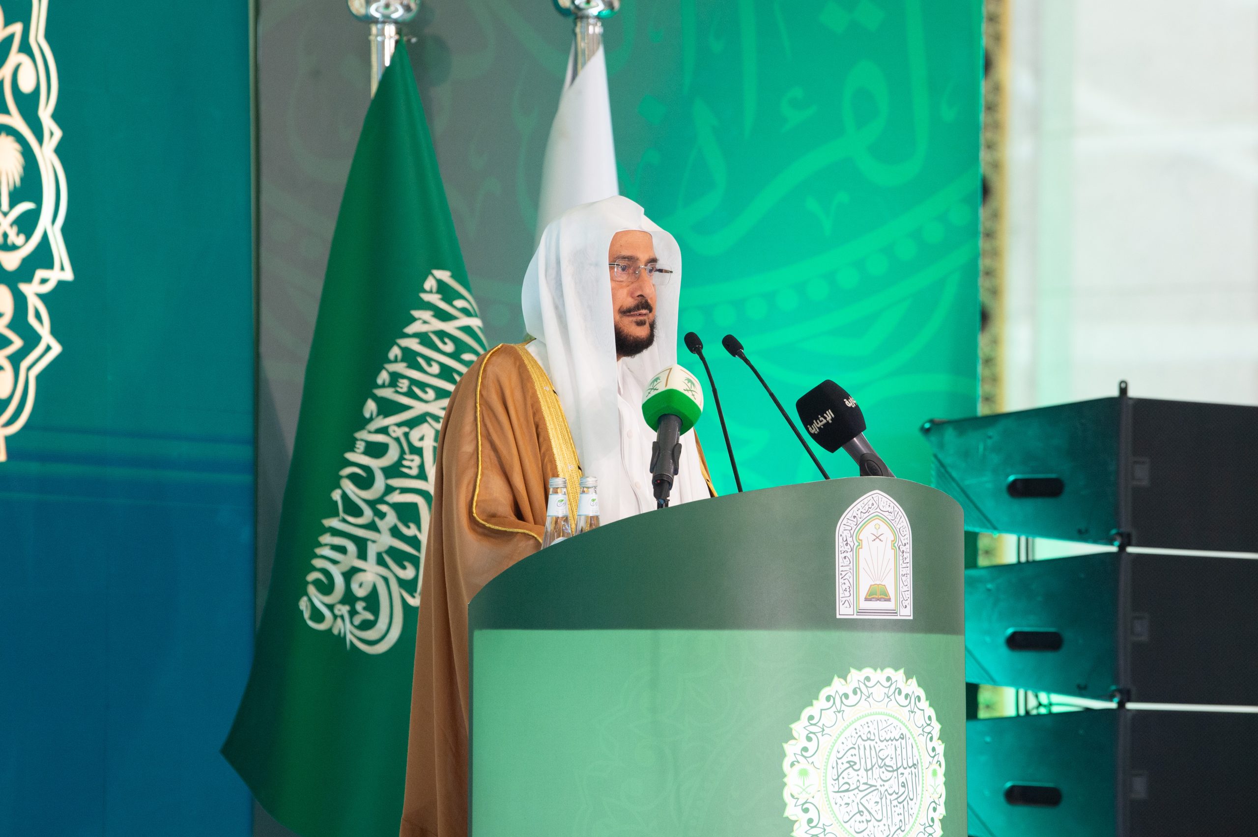 وتلى ذلك كلمة ألقاها معالي وزير الشؤون الإسلامية والدعوة والإرشاد الشيخ الدكتور عبداللطيف بن عبدالعزيز آل الشيخ رحّب فيها بالحضور من جوار الكعبة المشرفة وفي رحاب المسجد الحرام، مشيداً بالرعاية الكريمة من خادم الحرمين الشريفين، والمتابعة الحثيثة من سمو ولي العهد رئيس مجلس الوزراء الأمير محمد بن سلمان بن عبدالعزيز – حفظهما الله –، مؤكداً أن القرآن الكريم هو نور وهدى، وتلاوته عبادة، وتعلمه وتعليمه من أعظم القربات، مستشهداً بآيات بينات من كتاب الله، ومحذراً من الإعراض عنه.