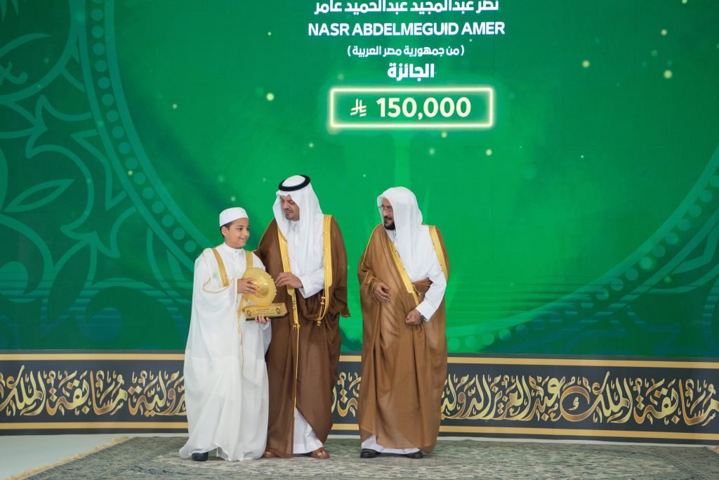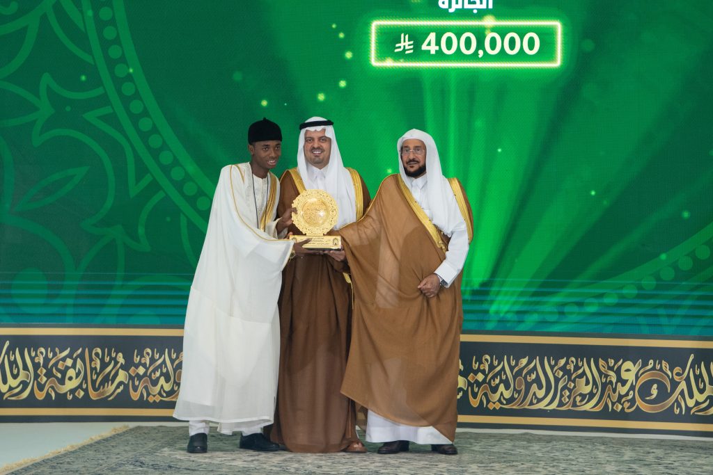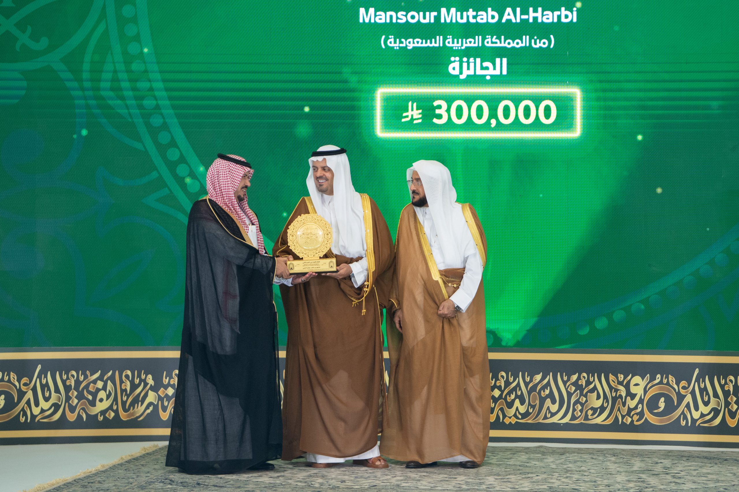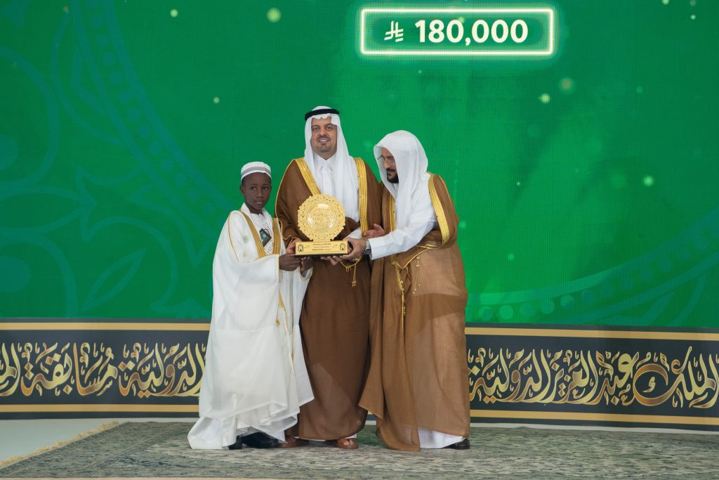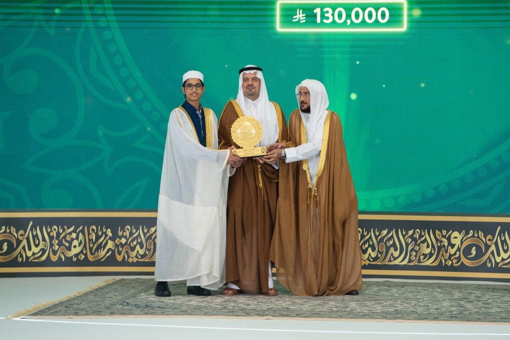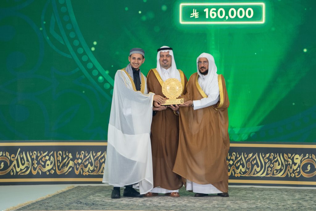 وشهد الحفل تكريم الفائزين في أفرع المسابقة، حيث بلغت قيمة الجوائز (4.000.000) أربعة ملايين ريال، إضافة إلى مكافآت لجميع المشاركين بلغت (1.000.000) مليون ريال، وذلك في ختام منافسات شارك فيها (179) متسابقاً يمثلون (128) دولة، في أكبر مشاركة دولية منذ انطلاقة المسابقة، بما يعكس مكانة المملكة الريادية في خدمة القرآن الكريم ورعاية حفظته من مختلف قارات العالم.