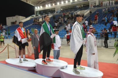 وفي نهائي نفس السباق (ذكور) انتزع العداءة الواعد السعودي مبارك سالم اليامي الميدالية الذهبية بزمن وقدره 10.56ث ، فيما حقق الفضية القطري تيمو جمعه جاسم بزمن وقدره 10.76ث ، وحل ثالثا ونال البرونزية السعودي فيصل حسن الاسمري بزمن وقدره 10.76ث