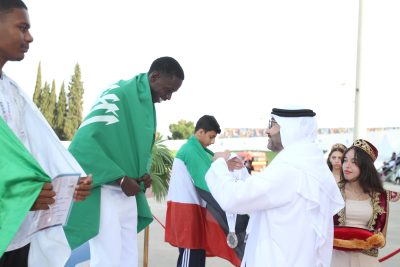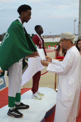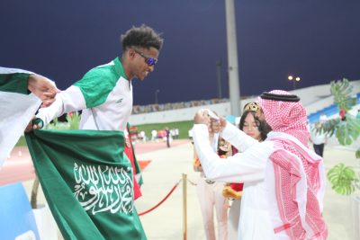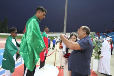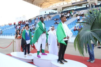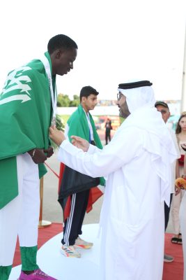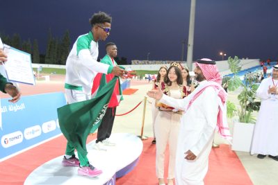 وجاءت الميداليات الذهبية الأولى اليوم (ثاني أيام البطولة ) عن طريق العداء حسن عيسى حقوي في سباق 110م حواجز بزمن 13.71 ث، بينما تحققت الذهبية الثانية عن طريق العداء الواعد مشعل عبدالله هزازي في نهائي سباق 400م حرة بزمن 47.24 ث، فيما أحرز الذهبية الثالثة العدّاء الواعد مبارك سالم اليامي في نهائي سباق 100م بزمن 10.56 ث.