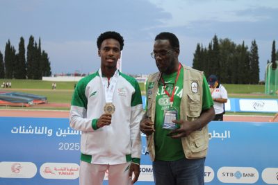 واصل نجوم المنتخب السعودي لألعاب القوى للناشئين والناشئات تألقهم في منافسات البطولة العربية الحادية عشرة، المقامة في تونس، بعدما نجحوا في زيادة غلتهم من الميداليات الملوّنة خلال منافسات اليوم، مؤكدين حضورهم القوي وقدرتهم على المنافسة عربياً عبر إنجازات لافتة عززت رصيد الأخضر في جدول التتويج، حيث أضاف المنتخب في اليوم الثاني من منافسات البطولة خمس ميداليات ملونة، منها ثلاث ذهبيات، وفضية واحدة، ومثلها من البرونز، لتصبح مجموعة الميداليات حتى نهاية اليوم الثاني سبع ميداليات، أربعة منها ذهبية، وفضية واحدة، وبرونزيتان.