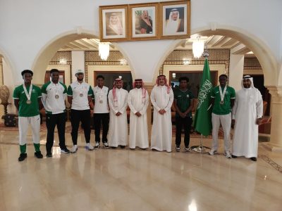 والقى معالي السفير (الصقر) كلمة ترحيبية، أعرب فيها عن سعادته بحضور الوفد السعودي، مشيدًا بما حققه أبناء وبنات المملكة من نتائج مشرفة في منافسات البطولة حتى الآن، مؤكدًا أن هذه الإنجازات تعكس حرص المملكة على دعم رياضة أم الألعاب عربيًا ودوليًا.