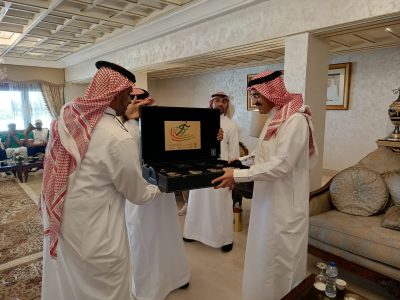 في ختام الزيارة قدم رئيس الاتحاد السعودي والعربي العميد علي بن إبراهيم الشيخي هدية تذكارية لمعالي السفير الدكتور عبدالعزيز بن علي الصقر