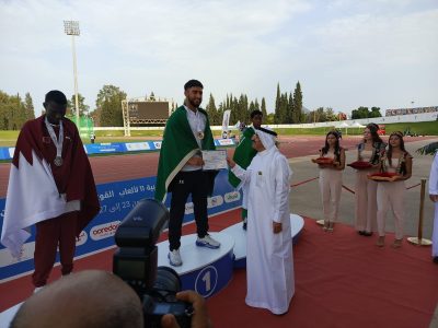 “يُذكر أن تونس تتصدر قائمة الميداليات حتى نهاية اليوم الثالث برصيد 20 ميدالية، منها 7 ذهبية، و6 فضية، و7 برونزية. وتليها المغرب بمجموع 14 ميدالية، بواقع 6 ذهبية، و3 فضية، و5 برونزية، فيما تحتل السعودية المركز الثالث برصيد 9 ميداليات، منها 5 ذهبية، و2 فضية، و2 برونزية.”