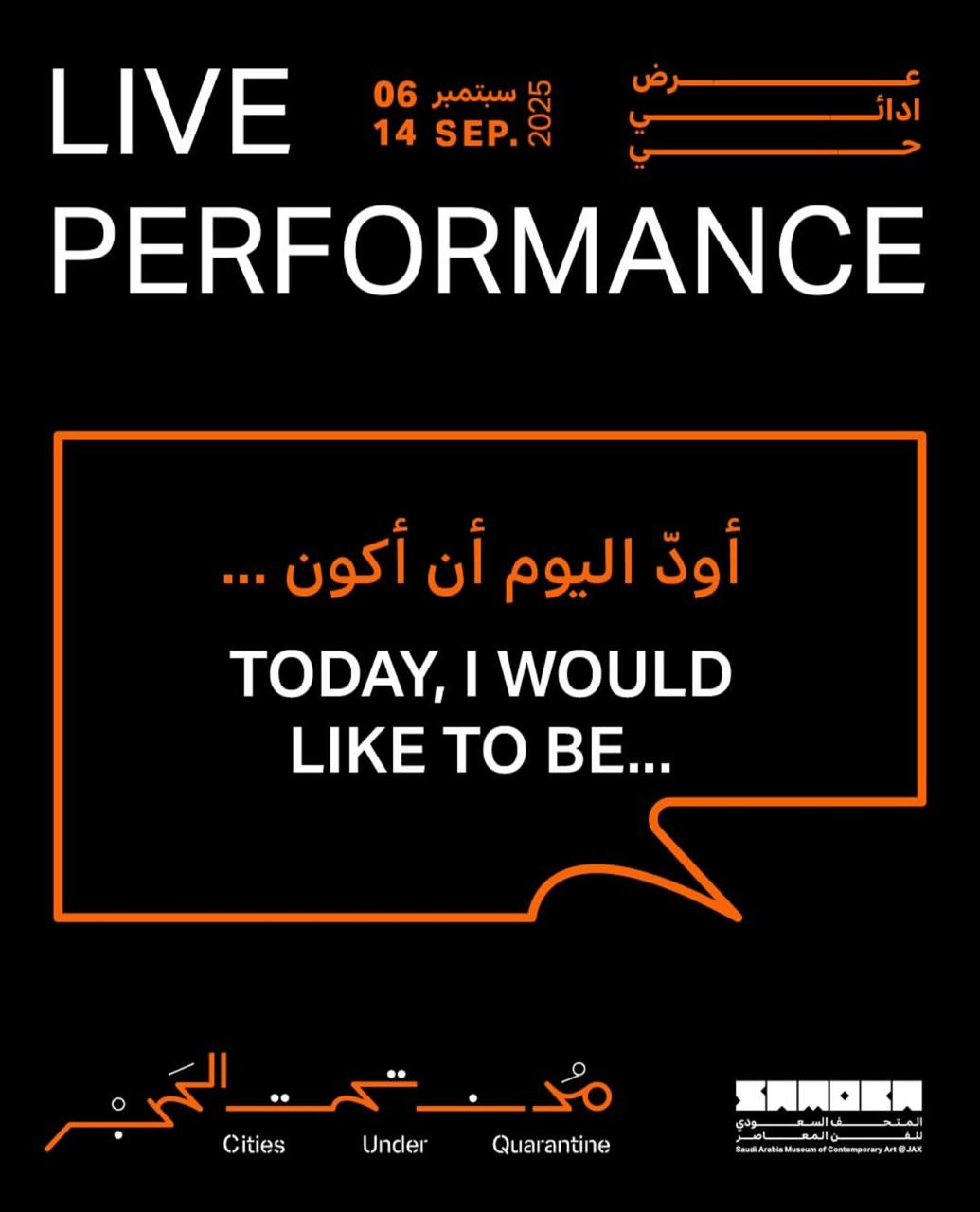 وفي ٦سبتمبر يُعرض للزوّار في ردهة الاستقبال تجربة عرض أدائي حي بعنوان «اليوم أريد أن أكون»، يشارك فيها الجمهور بتجربة رسم كتاب من صنع الفنان، ليقدّم تعبيراً إبداعياً متنامياً، وتتبعها فعالية إسدال الستار عن الأعمال الفنية.