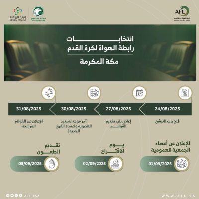 يذكر أن أعضاء الجمعية العمومية الذين يملكون حق التصويت حتى الآن والمسددين لرسوم الرابطة تجاوزوا الــ20 ، ومن المتوقع أن تشهد صالة بيت الشباب بمدينة الملك عبدالعزيز الرياضية بضاحية الشرائع مراسم الاقتراع ، في الوقت الذي لم تعلن الرابطة رسميا مقر الاقتراع حتى اعداد هذا الخبر ، علما بان موعد اجراء الانتخابات سيكون مساء يوم الثلاثاء 2 سبتمبر الجاري في حين تجتمع اللجنة المكلف بأعضاء الجمعية العمومية مساء اليوم الاثنين  الأول من سبتمبر