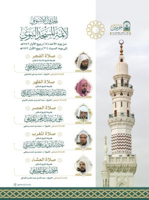 • العصر والمغرب: فضيلة الشيخ الدكتور ماهر المعيقلي.