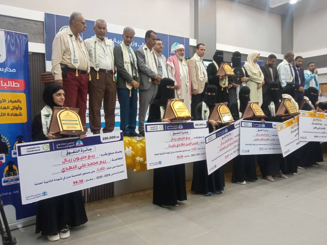 مدارس سماء عدن والنبراس تكرم الأولى بالثانوية العامة بالجمهورية بسيارة وأخريات حصدن المراتب الأولى في عدن