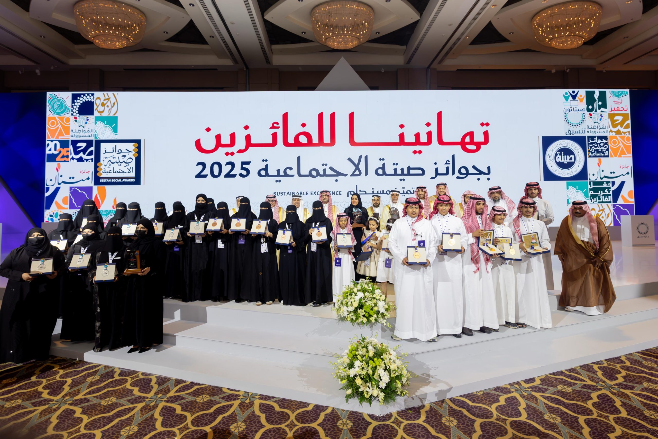 برعاية معالي وزير الموارد البشرية والتنمية الاجتماعية رئيس مجلس أمناء مؤسسة جائزة الأميرة صيتة بنت عبدالعزيز للتميز في العمل الاجتماعي المهندس أحمد الراجحي وبحضور سمو الأمير سعود بن فهد بن عبدالله عضو مجلس أمناء الجائزة نائب رئيس اللجنة التنفيذية كرمت جائزة الأميرة صيتة بنت عبدالعزيز للتميز في العمل الاجتماعي 35 فائزًا بجوائزها الاجتماعية لعام 2025م، كما أعلنت فتح الترشح للجائزة الكبرى بدورتها الثالثة عشرة تحت عنوان “الذكاء الاجتماعي في خدمة الإنسانية”، وذلك خلال الحفل الذي أقيم مساء اليوم (الأحد) بالرياض، بحضور عدد من أصحاب السمو والمعالي والسعادة ونخبة من قادة المجتمع والمهتمين بالعمل الاجتماعي والإنساني وذلك في فندق الفورسيزون.