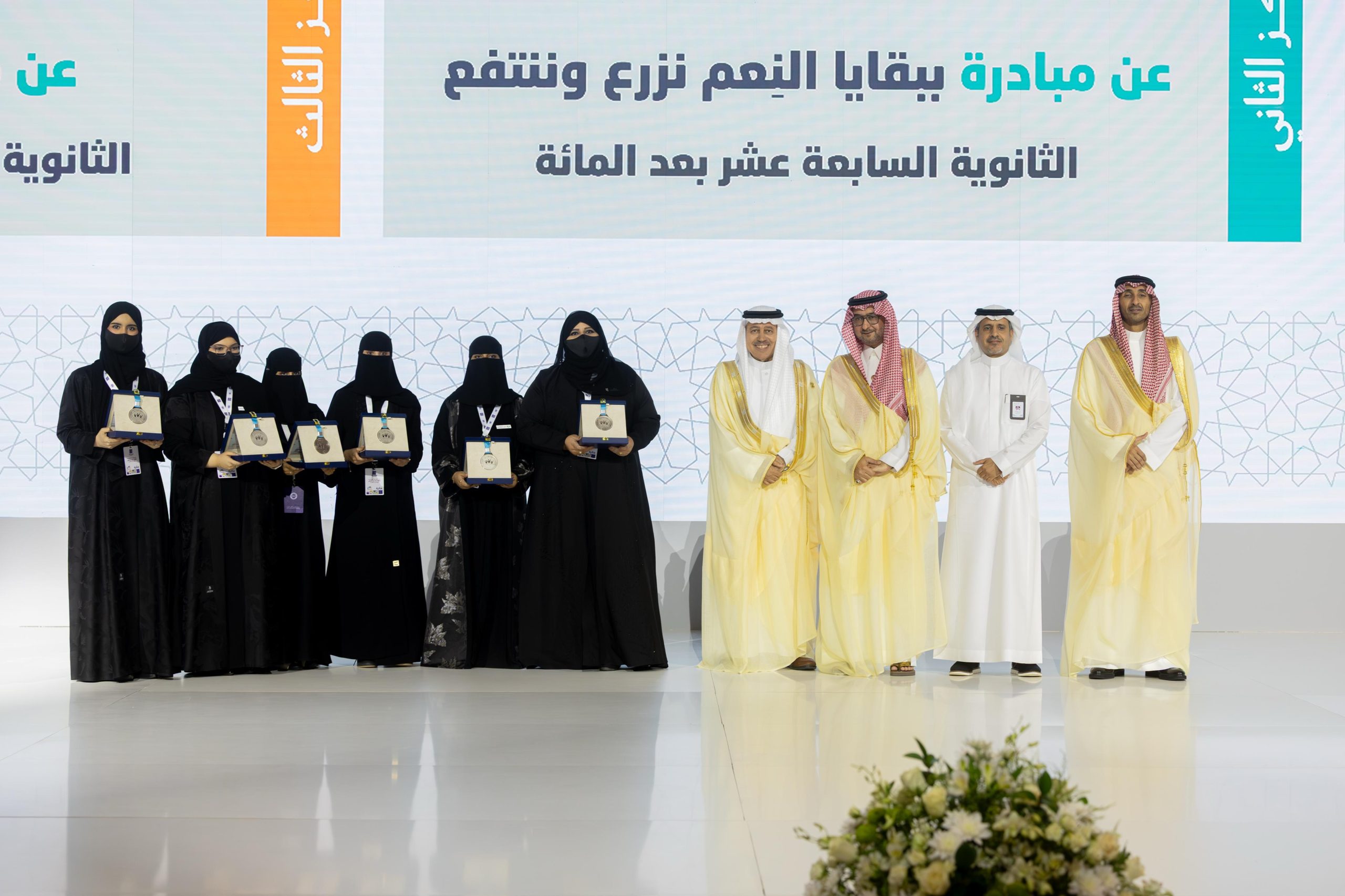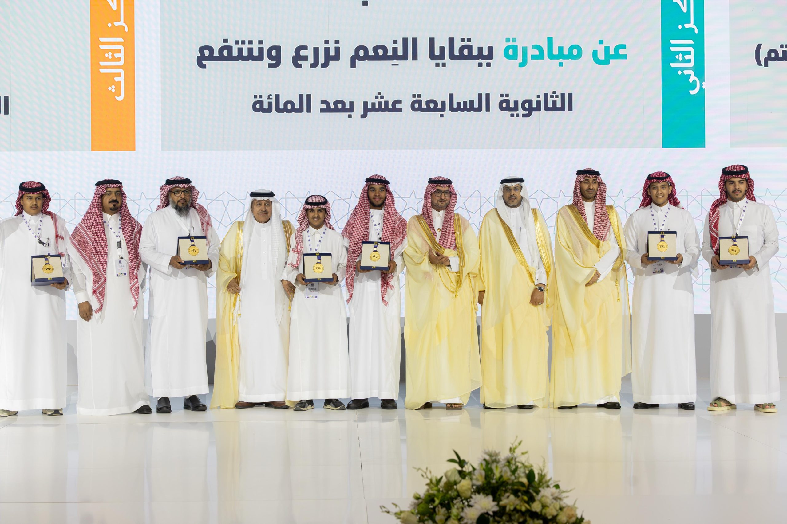 كما تم تكريم الفائزين في البرنامج الوطني لتعزيز المبادرات المجتمعية “صيتاثون” في دورته الثانية، حيث كانت الصدارة لفريق “الحسام” من منطقة الباحة؛ عن مبادرة “تطعيم شجرة الزيتون البري (العَّتَم)”، وحل ثانيًا فريق”أفق” من محافظة جدة؛ عن مبادرة “ببقايا النعم نزرع وننتفع”، وأخيرًا فريق مدرستي وطن وعطاء من محافظة ينبع؛ عن مبادرة “غرسة زرقاء”.
