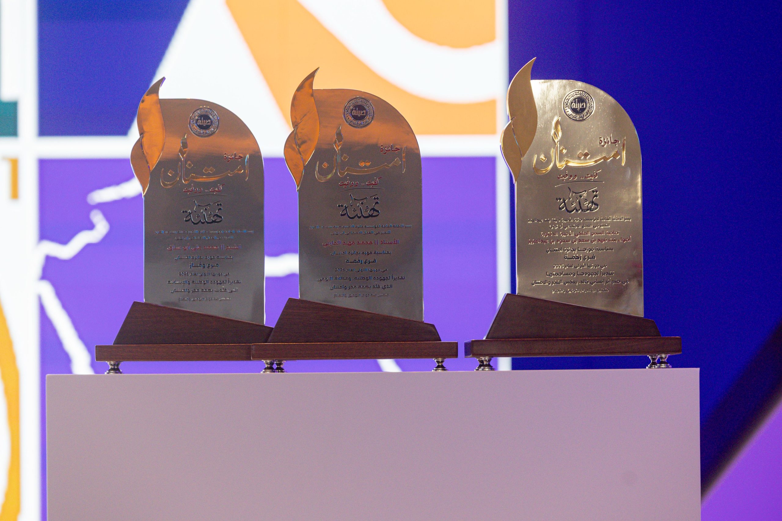 واختتمت فقرات الحفل بتكريم الفائزين بالجوائز الاجتماعية، حيث فاز في جائزة “امتنان” بدورتها الأولى صاحبة السمو الملكي الأميرة الدكتورة أضواء بنت فهد بن سعد بن سعود بن عبدالعزيز آل سعود في فرع “رَحمة”، والأستاذ محمد بن فهد الحارثي في فرع “رِفعة”، والشيخ محمد بن علي بن جابر أبو ساق في فرع “وَقار”.