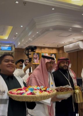 ويأتي هذا الاستقبال في إطار الجهود التطوعية المباركة التي يقدمها فريق صنّاع الإيجابية لخدمة ضيوف الرحمن، وتجسيداً للقيم النبيلة التي يحملها أبناء المملكة في خدمة الإسلام والمسلمين.