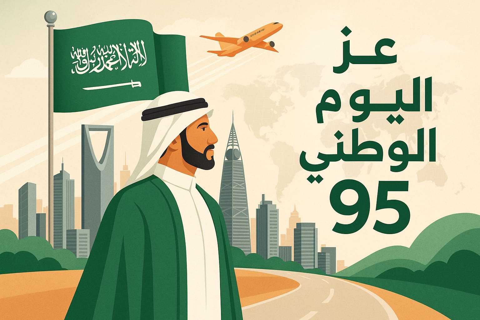 يحتفل الشعب السعودي هذا العام باليوم الوطني الخامس والتسعين للمملكة العربية السعودية، في ذكرى توحيد الوطن على يد المؤسس الملك عبدالعزيز بن عبدالرحمن آل سعود –رحمه الله– الذي أرسى دعائم الوحدة بين القبائل المتفرقة، وأسس هوية وطنية تجمع كافة أبناء الشعب تحت راية واحدة.
