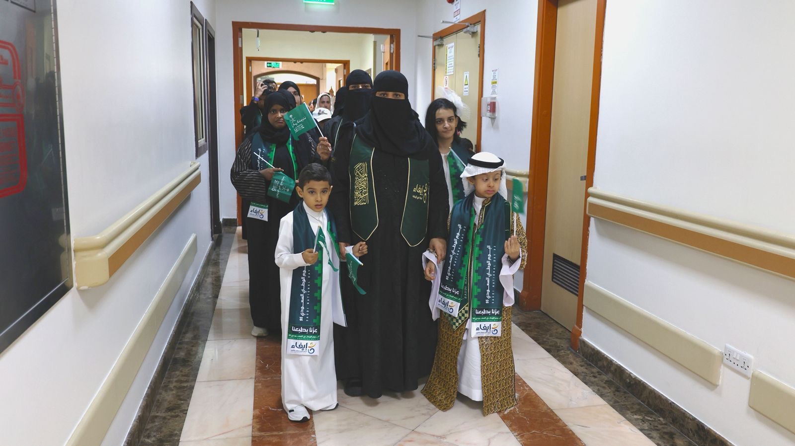 بمناسبة اليوم الوطني السعودي 95 … أبناء وبنات مجمع الأمير سلطان للتأهيل يزورون مرضى مجمع الدمام الطبي