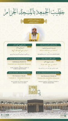 خطيبي الجمعة في الحرمين الشريفين ليوم 11 ربيع الآخر 1447هـ
