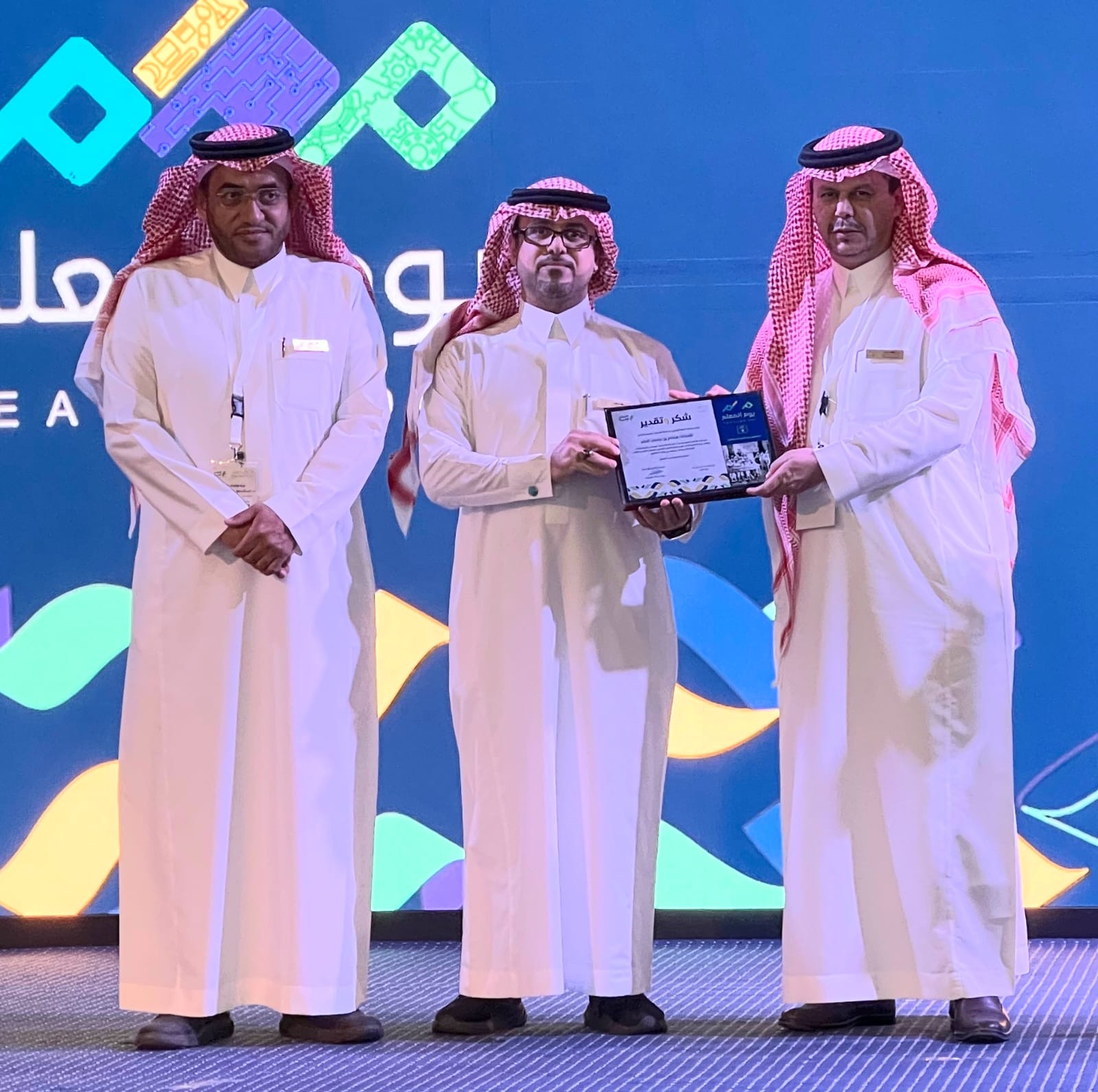 ثم شاهد الجميع فيلم مرئي( هذا المعلم)، بعدها أقيمت الندوة العلمية ( استخدام التقنية والذكاء الاصطناعي في التعليم)، بمشاركة مجموعة من معلمي ومعلمات الأحساء، ثم كرّم مدير التعليم مجموعة من المعلمين والمعلمات المتميزين .