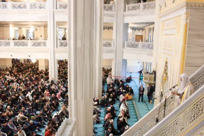 في إطار برنامج زيارة أئمة الحرمين الشريفين الذي تُنظّمه وزارة الشؤون الإسلامية والدعوة والإرشاد، ألقى فضيلة الشيخ الدكتور عبدالله بن عبدالرحمن البعيجان إمام وخطيب المسجد النبوي الشريف، خطبة الجمعة اليوم في المسجد الجامع بالعاصمة الروسية موسكو، وذلك بحضورٍ تجاوز خمسة عشر ألف مصلٍّ من مختلف الجاليات الإسلامية، وبحضور مفتي روسيا الاتحادية الشيخ راوي عين الدين، وسفير خادم الحرمين الشريفين لدى روسيا الاتحادية الأستاذ سامي بن محمد السدحان، وعدد من الشخصيات الدينية والرسمية.