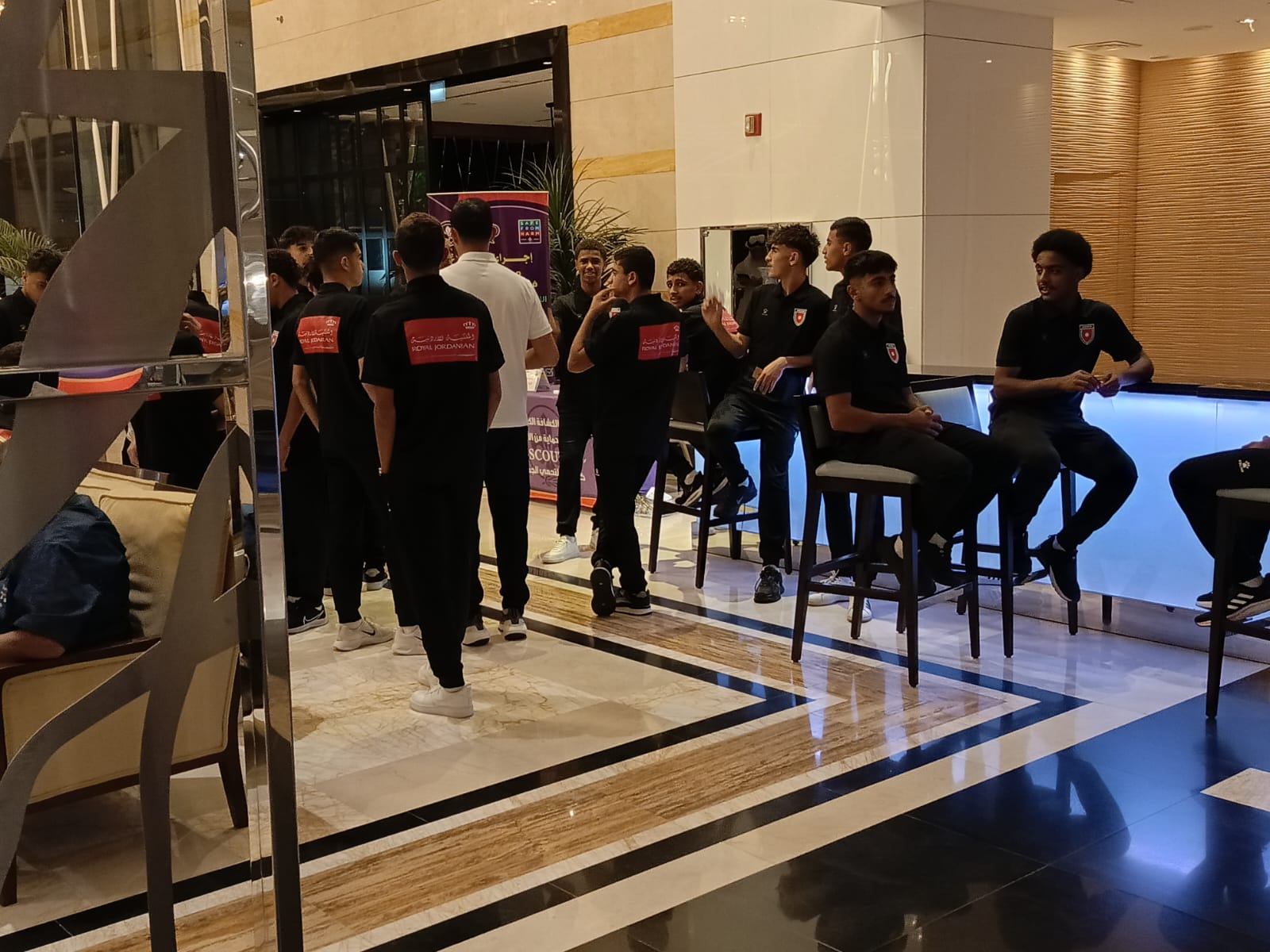 وأضفى اللاعبون على المكان رونقًا وجمالًا بزيهم الموحد، مما جعل الأجواء مفعمة بالحيوية والبهجة. بدا الوفد الأردني سعيدًا للغاية بتواجده، وتابع بعضهم نتيجة مباراتهم الودية ضد منتخب الكويت للناشئين، والتي انتهت لصالحهم.