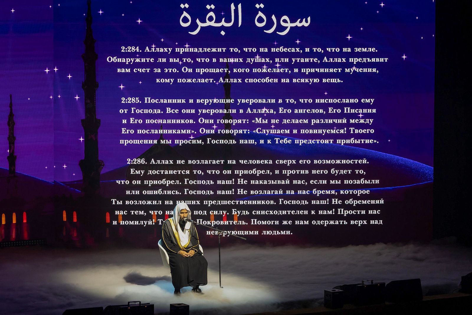 شهدت مسابقة موسكو الدولية للقرآن الكريم في نسختها الثالثة والعشرين، يوم السبت الموافق 26 ربيع الآخر 1447هـ في قاعة الكوزموس حضور فضيلة الشيخ الدكتور عبدالله بن عبدالرحمن البعيجان، إمام وخطيب المسجد النبوي الشريف، ضيفًا شرفيًا في مراسم الحفل الختامي، وذلك تزامناً مع زيارة فضيلته إلى العاصمة الروسية ضمن برنامج زيارة أئمة الحرمين الشريفين الذي تُنظمه وزارة الشؤون الإسلامية والدعوة والإرشاد.