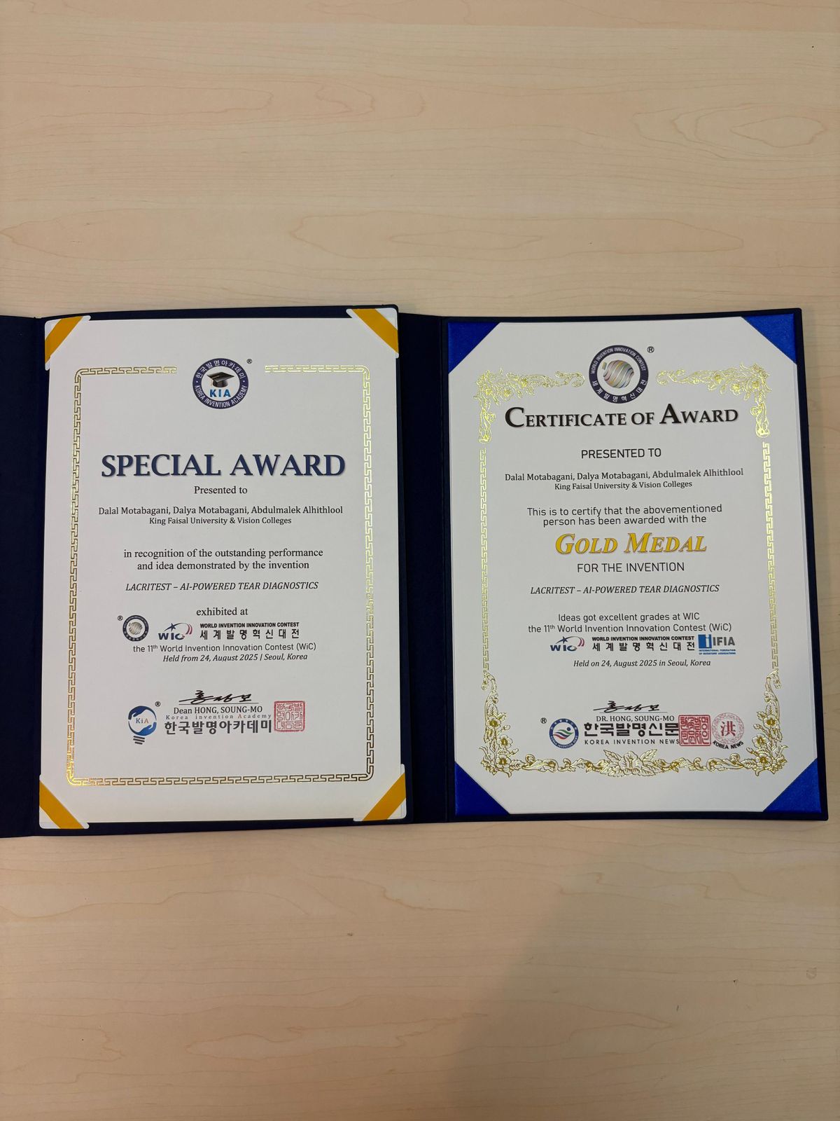 فقد تمكن فريق سعودي من طلاب الطب من إحراز الميدالية الذهبية والجائزة الدولية الخاصة من المنظمة الكورية للاختراعات (KIA)، ضمن فعاليات المسابقة العالمية للاختراعات والابتكارات (WiC 2025) في دورتها الحادية عشرة، التي احتضنتها كوريا الجنوبية بمشاركة نخبة من المبتكرين من مختلف أنحاء العالم.