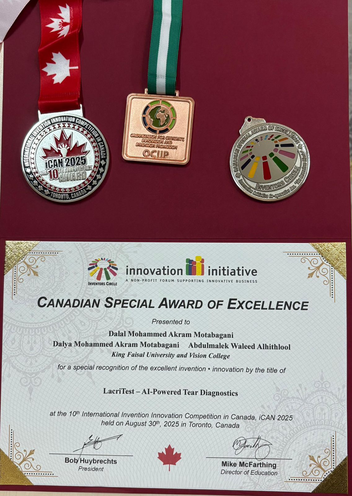 🏅 الجائزة الكندية الخاصة (CANADIAN SPECIAL AWARD) من Innovation Initiative Co-operative Inc. “The Inventors Circle”