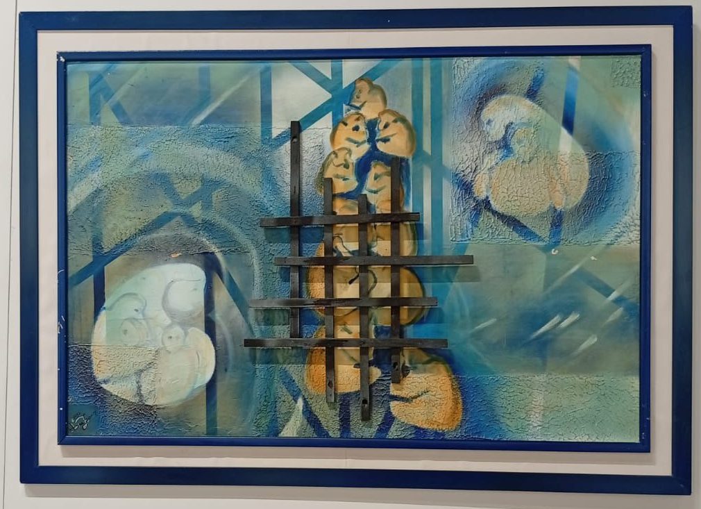 واللوحة تجسد : مشاعر داخليه مسجونه وبعضها يحتاج للحرية والانطلاق وهناك مشاعر تحتاج إلي حضن والبعض مشاعر غير مفهومة وتائه مبهمه من الصغر للكبر .