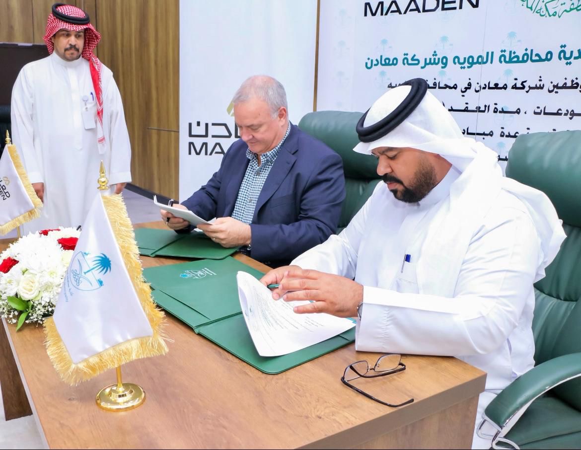 وقع رئيس بلدية محافظة المويه المهندس عبد الله بن سعود السبيعي؛ عقدًا استثماريًا مع شركة معادن لإنشاء قرية سكنية لموظفي الشركة ومبادرات اجتماعية لصالح المحافظة؛ وذلك خلال استقباله وفد الشركة الذي ترأسه الدكتور داريل كلارك القائم بأعمال نائب الرئيس التنفيذي لوحدة أعمال معادن الأساس والمعادن الجديدة.