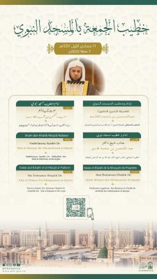 خطيبا الجمعة في الحرمين الشريفين ليوم 16 جمادى الأولى 1447هـ