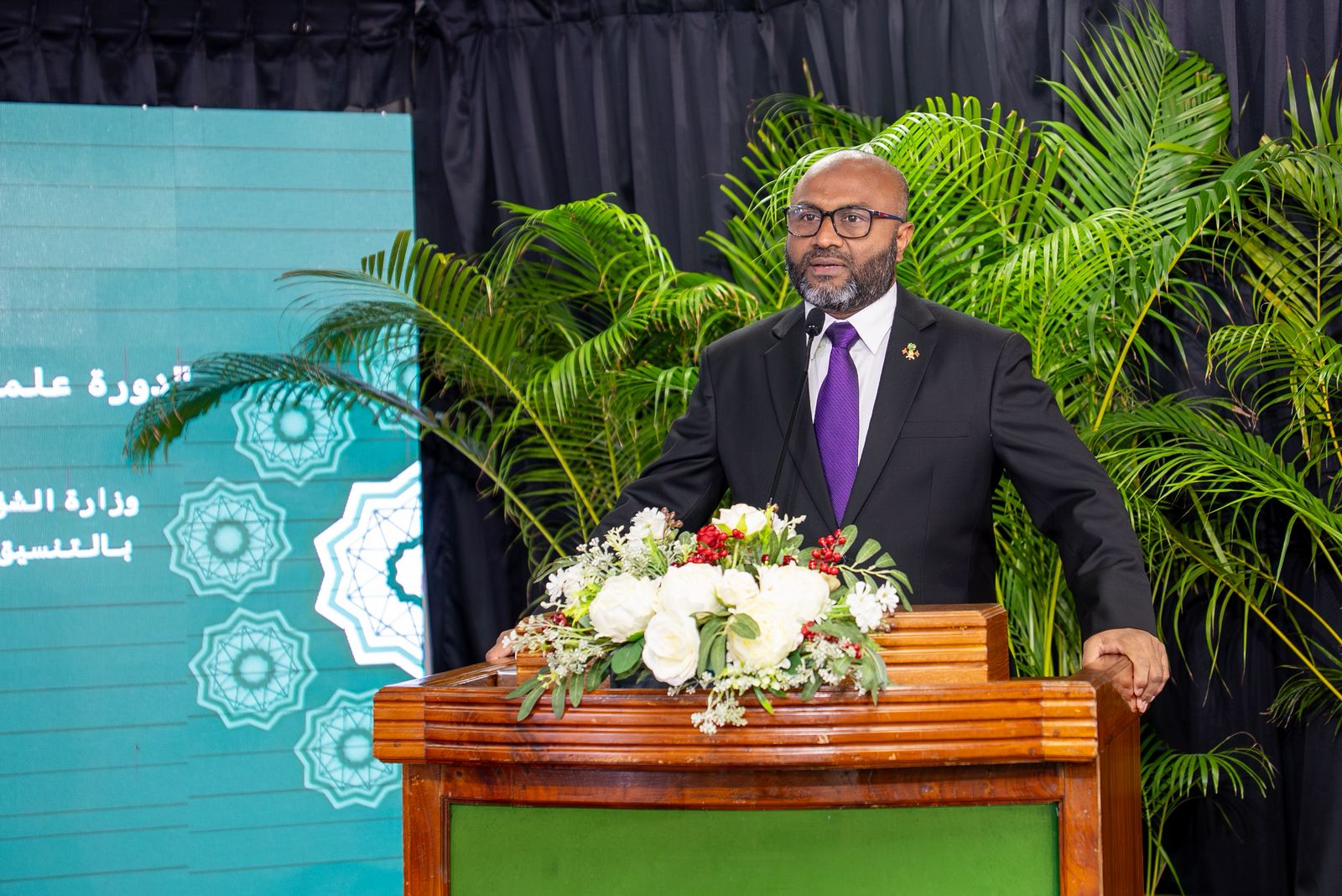وشارك بحفل الافتتاح معالي وزير الشؤون الإسلامية بجمهورية المالديف الدكتور محمد شهيم علي سعيد وسعادة سفير خادم الحرمين الشريفين لدى جمهورية المالديف الأستاذ يحيى بن حسن القحطاني، ومعالي رئيس المركز الإسلامي الشيخ محمد لطيف علي ، إلى جانب عددٍ من المسؤولين والدعاة وطلبة العلم.