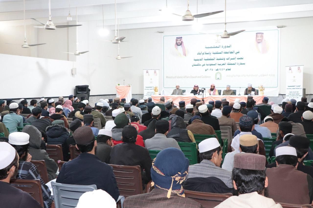 اقامت وزارة الشؤون الإسلامية والدعوة والإرشاد ممثلة بالملحقية الدينية في باكستان دورة علمية للأئمة والخطباء والدعاة وطلبة العلم انطلقت فعالياتها صباح يوم الاثنين ٢٦ جمادى الأولى ١٤٤٧هـ في العاصمة الباكستانية إسلام آباد، بمشاركة نحو ٥٠٠ من الأئمة والخطباء والدعاة وطلبة العلم من مختلف المناطق الباكستانية.