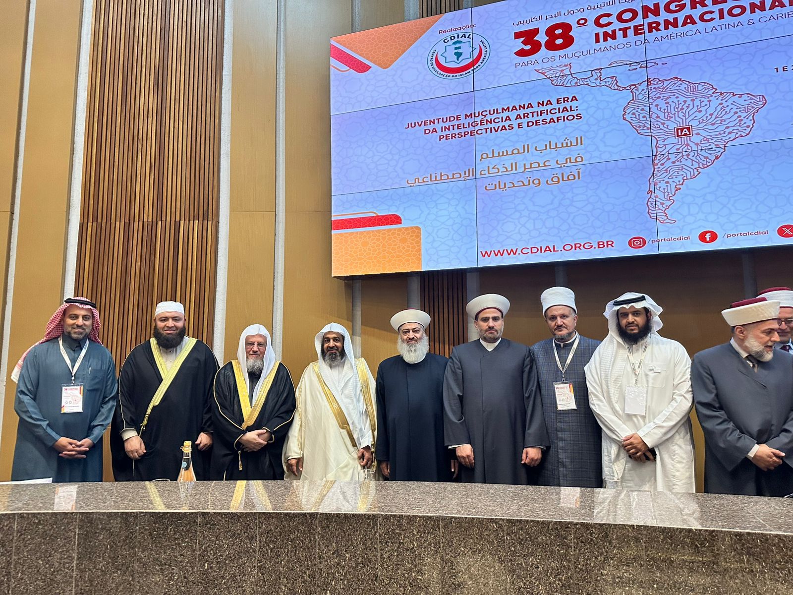 جاء ذلك خلال كلمة المملكة لمعالي وزير الشؤون الإسلامية والدعوة والإرشاد الدكتور عبداللطيف آل الشيخ والتي ألقاها نيابة عنه وكيل الوزارة للشؤون الإسلامية الدكتور عواد بن سبتي العنزي، في حفل افتتاح المؤتمر السنوي الثامن والثلاثين لمسلمي أمريكا اللاتينية ودول البحر الكاريبي، الذي انطلق مساء يوم أمس الجمعة بتنظيم من مركز الدعوة الإسلامية بأمريكا اللاتينية ودول البحر الكاريبي بالتعاون مع الوزارة، والذي يُقام هذا العام تحت عنوان: “الشباب المسلم في عصر الذكاء الاصطناعي: آفاق وتحديات”، وذلك خلال الفترة من 21 إلى 23 نوفمبر 2025م بمدينة ساوباولو في جمهورية البرازيل الاتحادية، بمشاركة وفود رسمية وباحثين ومختصين من مختلف الدول.