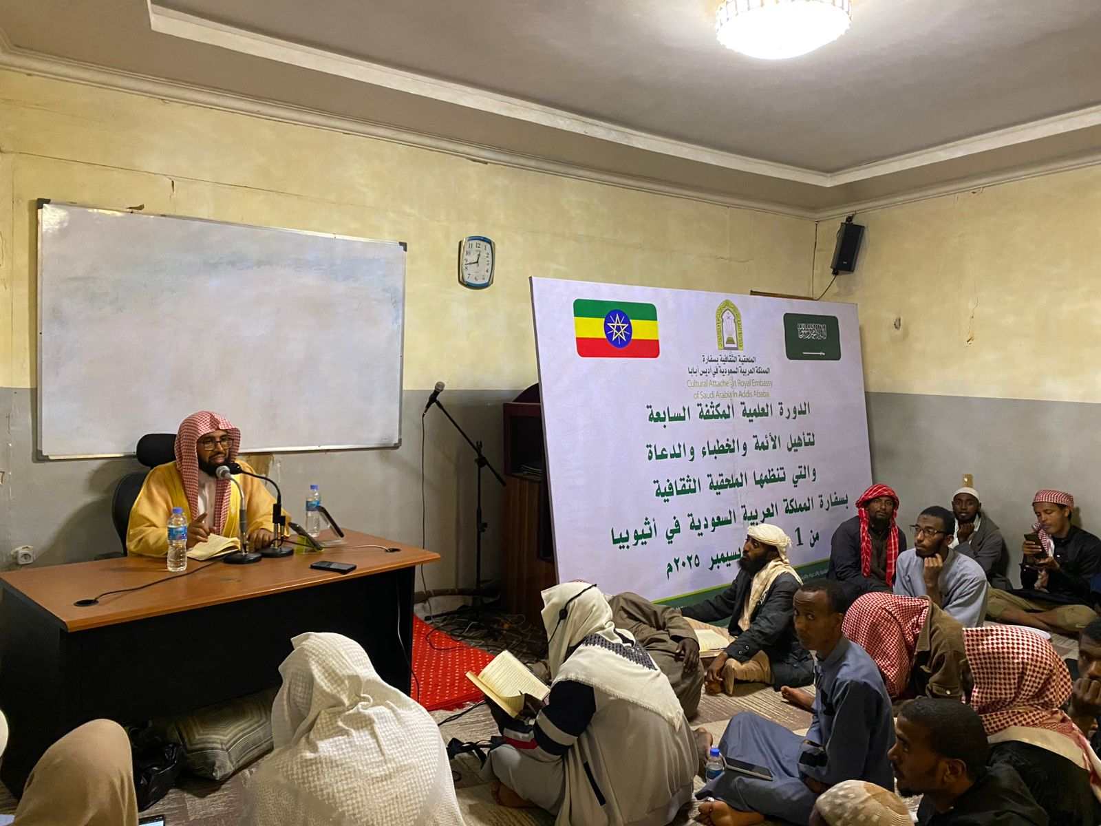 اختتمت وزارة الشؤون الإسلامية والدعوة والإرشاد ممثلة بالملحقية الدينية في سفارة المملكة بأديس أبابا ، اليوم السبت 15 جمادى الآخرة 1447هـ، أعمال الدورة العلمية المكثفة السابعة لتأهيل الأئمة والخطباء والدعاة وطلبة العلم من الجنسين، والبرامج الدعوية والعلمية المصاحبة لها.