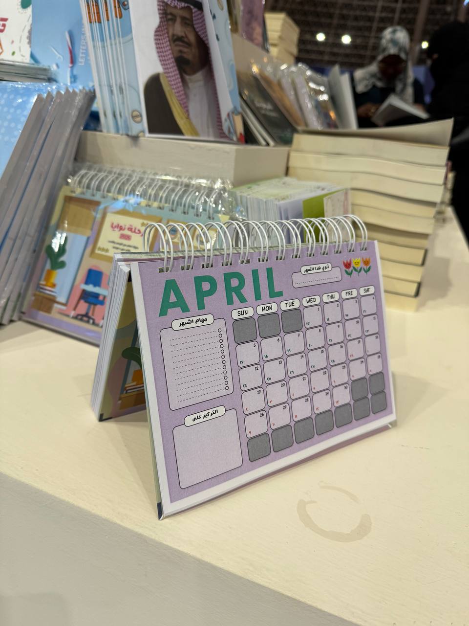 كما تحتوي على تقويم ميلادي هجري بتصميم أنيق مناسب للاستخدام على المكتب أو في ركن القراءة كتذكير بالمهام والمواعيد .