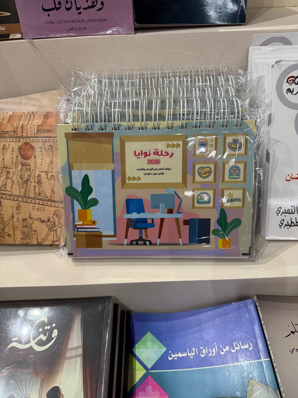 في ركن المؤلف السعودي بمعرض جدة للكتاب تجدون “رحلة نوايا ” التي تعتبر أجندة سنوية صمّمتها المؤلفة ، عبير دعوجي خصيصًا لكل شخص يشعر أنه يريد بداية مختلفة… بداية فيها معنى، وتركيز، وواقعية. الأجندة تجمع بين التخطيط العملي و الاشتغال الداخلي؛ كل صفحة تقودك خطوة صغيرة لكنها مؤثرة نحو نسخة أقرب لقلبك.