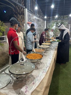وبعدها تناولو وجبه العشاء مع الاكلات الشعبيه الاحسائيه بين الجلسات الشعبيه وبين ظلال النخيل على يد امهر الطباخين في الاحساء راضي الخواهر ابو سلطان مثل الجريش والمفلق والعصيد والساقو والرز الحساوى وغيرها من الاكلات الشعبيه