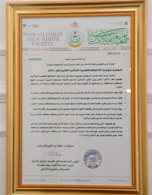 ويُذكر أن جمعية أهل الحديث المركزية الباكستانية، التي يربو تاريخها على قرنٍ من الزمان، ويمتد حضورها الشعبي ليشمل قرابة مائة مليون مسلم في شبه القارة الهندية، وتضم نخبة من العلماء والمفكرين، تُعد من أبرز المؤسسات الإسلامية الفاعلة في جمهورية باكستان، وتعنى بخدمة القرآن الكريم والسنة النبوية، ونشر منهج الاعتدال والوسطية.